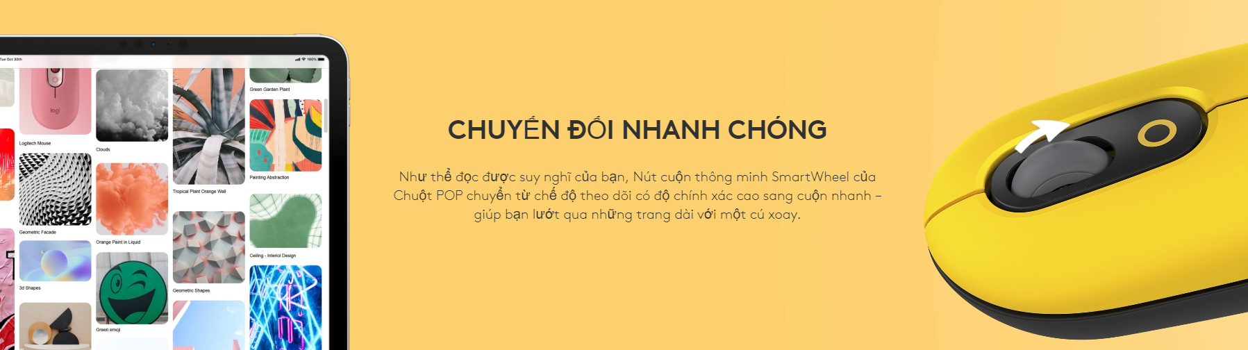 Giới thiệu Chuột không dây Logitech Pop Mouse màu vàng-Hàng chính hãng