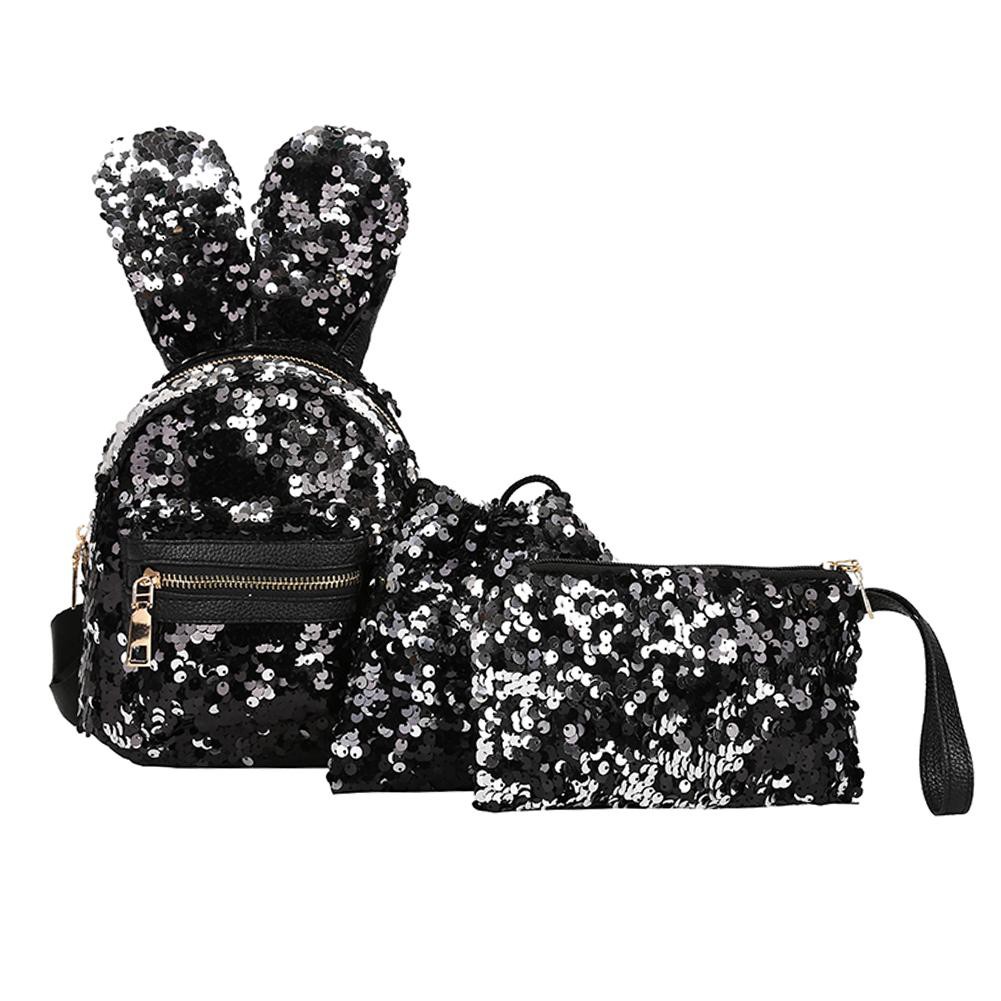 3pcs/Set Women Rabbit Ears Mini Glitter Sequins Backpack Party Messenger Clutch Composite Shoulder Bags Wristlets