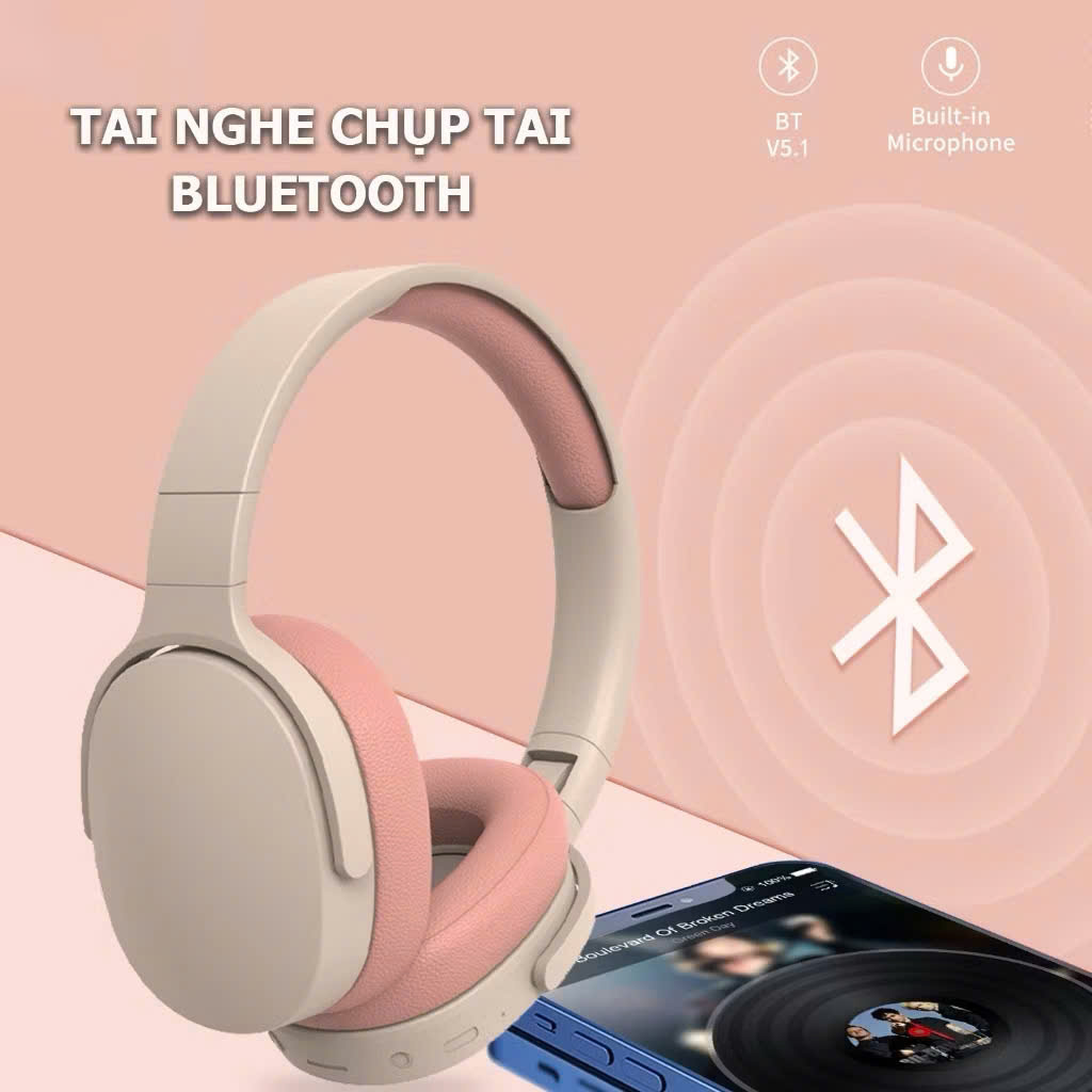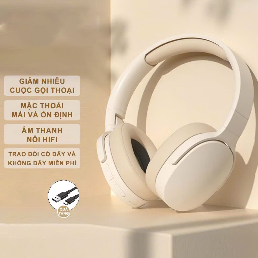 Tai nghe chụp tai bluetooth không dây âm Bass sâu trầm ấm có mic đàm thoại chống ồn, độ trễ cực thấp, gập gọn chơi game - Hàng chính hãng